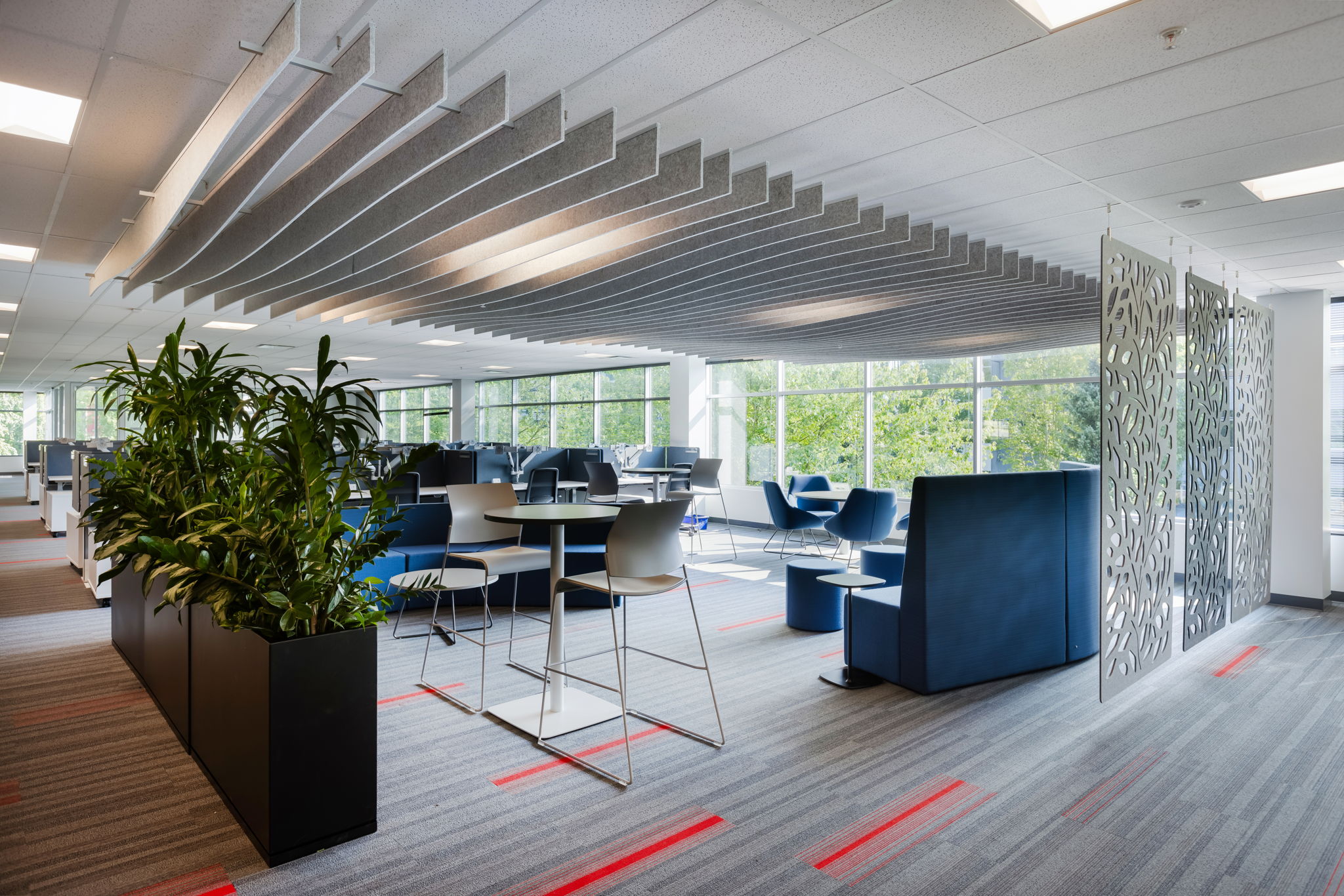 Fortinet took over a lease from HSBC, which had recently completed its own tenant improvements prior to the COVID shutdown. Given this, great care was taken to preserve and repurpose a significant portion of the existing work.